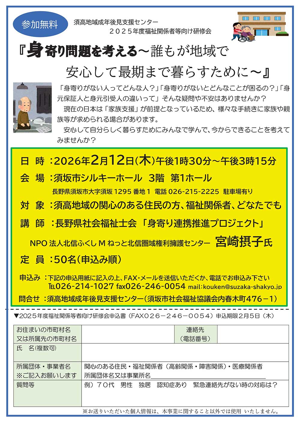 お電話でお申し込みの方は、026-214-2994(平日8:30~17:15)